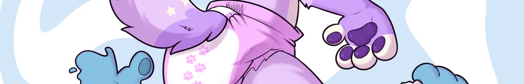A diapered and collared kit peeing herself and cuddling her plushies 🦊🏳️⚧️💜